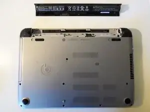 Выключите ноутбук и положите его лицевой стороной вниз, найдите аккумулятор.