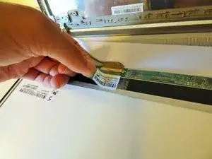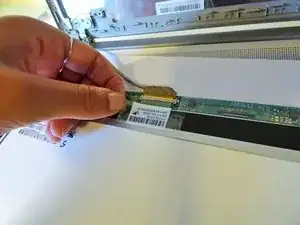 Снимите видеокабель с разъёма, аккуратно вытянув серую защёлку.