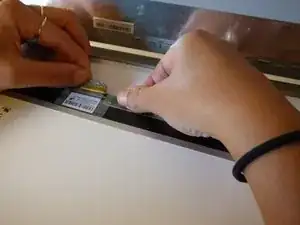 Используйте пластиковую карту или ноготь, чтобы отделить чёрную пластиковую рамку от корпуса экрана.