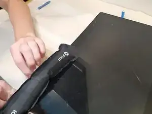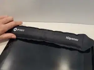 Положите прозрачной стороной iOpener на внешний край экрана, чтобы расплавить клей.