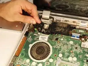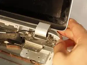 Снимите экран, потянув его вперёд от корпуса. Это позволит петлям освободиться от корпуса.