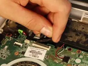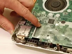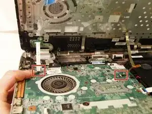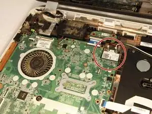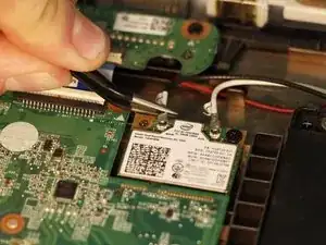 Пинцетом аккуратно отсоедините два кабеля, подключенных к модулю WLAN.