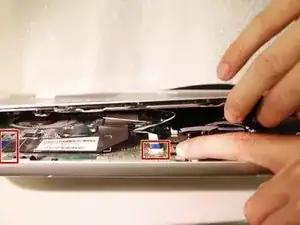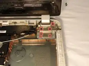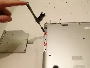 Используя JIS #00 отвёртку, отверните два винта, которые стали видимы после снятия оптического привода.