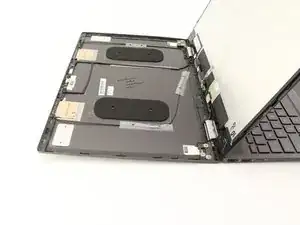 Не отделяйте дисплей от корпуса полностью, так как все еще есть соединительные кабели, удерживающие его на месте.