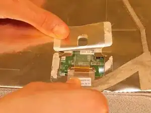 Найдите черный и белый язычок, который соединяет шлейф сенсорной панели с материнской платой.