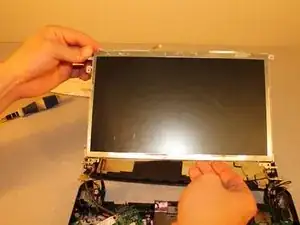 После удаления скоб переверните экран и отключите черный провод, соединяющий его с экраном.