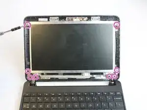 Найдите восемь серебристых винтов длиной 2.9 мм, прикрепляющих экран к крышке.