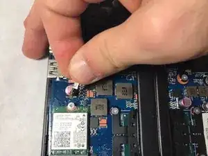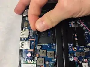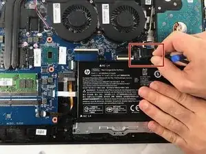 Вытащите кабель аккумулятора из разъема материнской платы.