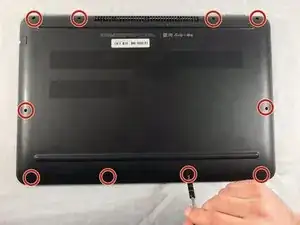 Задняя панель закреплена 10 винтами. С помощью отвертки Phillips #00 выкрутите десять винтов длиной 1,2 мм.
