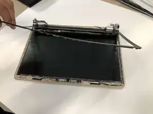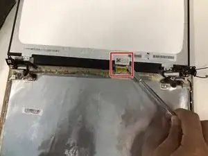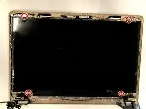 Удалите пять винтов JIS #1, крепящих петли экрана к корпусу ноутбука.