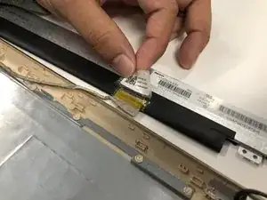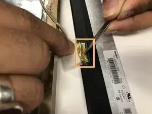Осторожно снимите наклейку, закрывающую провод, соединяющий экран с материнской платой.