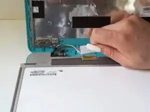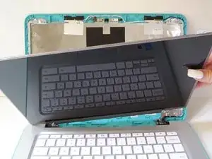 Возьмите экран за разблокированные язычки и наклоните его вниз и от сборки экрана, положив его вниз.