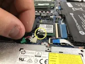 Аккуратно также снимите два антенных провода, подключённых к экрану. Для этого осторожно вытащите их из разъёмов на плате Wi-Fi.