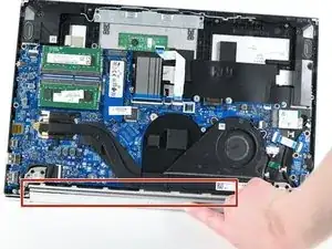 Найдите рамку петли, где окантовка дисплея соприкасается со задней крышкой.