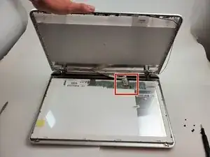Отключите кабель, подключённый к сборке дисплея, мягко потянув за него.
