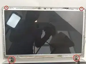 Удалите четыре винта 4 мм, удерживающие заднюю крышку в сборке дисплея, крестовой отверткой Philips #00.