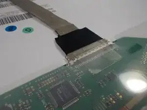 Теперь, когда экран положен лицевой стороной вниз на клавиатуру, нужно отсоединить провод, соединяющий экран с устройством.