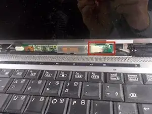 Отключите кабель подсветки с правой стороны инвертора, удерживая инвертор на месте и крепко потянув за разъем.