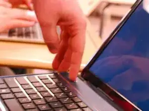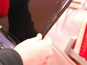 Когда винты извлечены, снимите экран и положите его на клавиатуру.