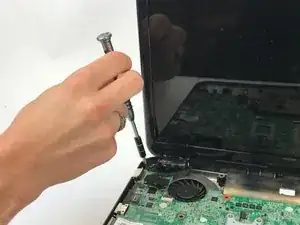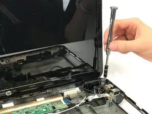 После удаления всех винтов аккуратно поднимите экран ноутбука от основания компьютера.