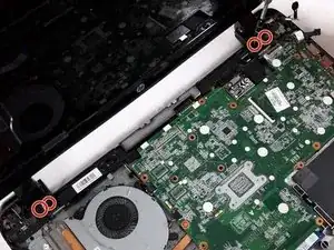Удалите два винта Phillips #1 длиной 6,5 мм, удерживающих клавиатуру, со дна ноутбука.