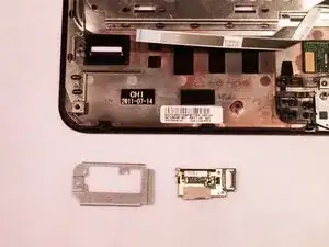 Отсоедините ZIF-разъём на модуле считывателя отпечатков и снимите плату считывателя отпечатков.