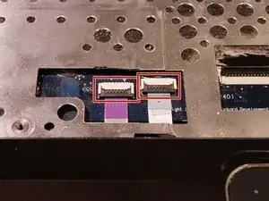 Отсоедините 2 ZIF-разъёма, где подключены кабель тачпада и считыватель отпечатков.