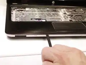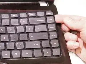 Освободите верхнюю часть клавиатуры, приподняв её, и аккуратно потяните вверх, пока клавиатура полностью не поднимется.