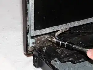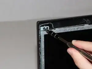 Отвинтите восемь винтов 2 мм крестовой отвёрткой Phillips (PH1) с экрана: четыре винта слева и четыре винта справа.