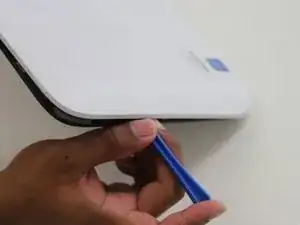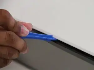 Осторожно вставьте пластиковый монтажный инструмент между дисплеем и задней панелью.