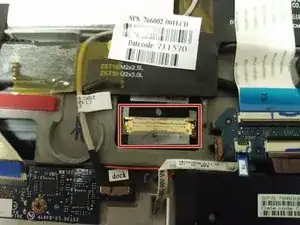 Используйте пинцет, чтобы поднять желтый разъем кабеля дисплея.