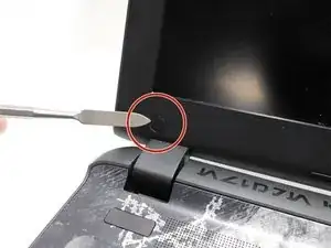 Снимите два круглых пластиковых крышки с винтов, затем открутите два винта длиной 4.5 мм с помощью отвертки Phillips #1.