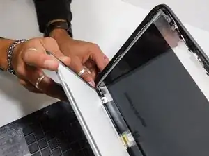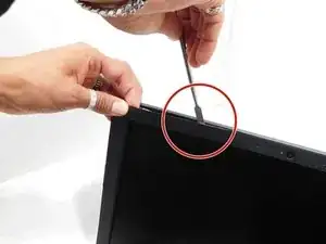 Вставьте лопатку между рамкой и дисплеем в верхней части.