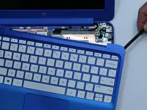 Используйте пластиковую лопатку, чтобы отжать рамку клавиатуры от корпуса. Отжимайте по краю, внимательно следя за тем, чтобы лопатка не засовывалась слишком глубоко под рамку (во избежание повреждения внутренних компонентов).