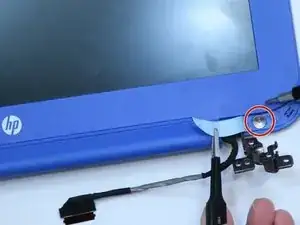 Удалите пять шарнирных винтов длиной 4 миллиметра с помощью отвертки Phillips #00.