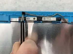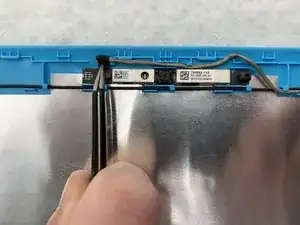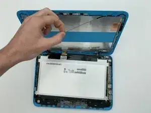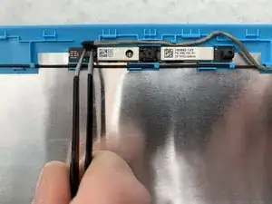 Возьмите пинцет и поднимите маленький разъём слева от веб-камеры.