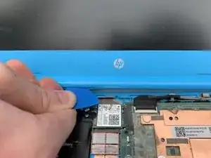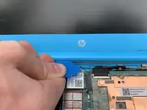 Вставьте монтажные медиаторы в зазор между клавиатурой и корпусом ноутбука.