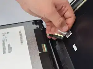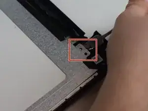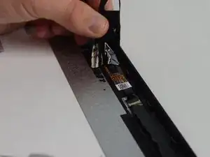 Продолжайте поддевать сенсорный экран в области петли ноутбука, отделяя его от пластиковой подложки.
