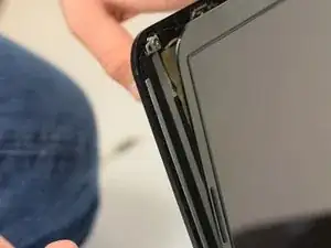 С помощью острого конца инструмента для поддевания отделите пластик от экрана.