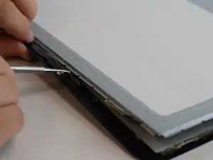 Используя инструмент для поддевания, начните отделять сенсорный экран от пластиковой подложки.