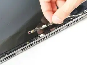 Используя инструмент для поддевания, аккуратно подденьте длинную пластиковую рамку и отведите её от экрана.