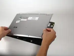 Сдвиньте экран вверх от петель и поднимите его от задней панели.