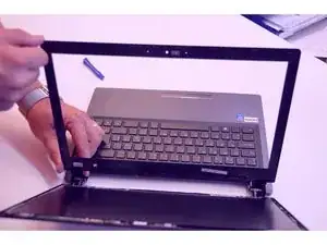 Поочерёдно отсоединяйте фиксирующие элементы рамки, окружающей экран LCD.