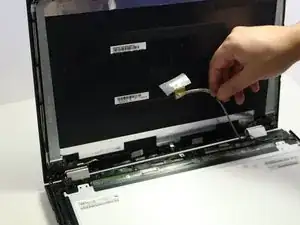 Проследуйте за тем же кабелем по боковой стороне экрана и отклейте и отключите кабель, идущий в камеру.