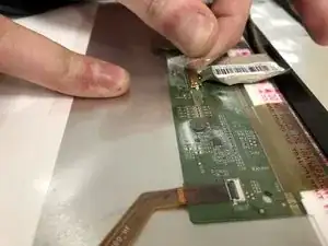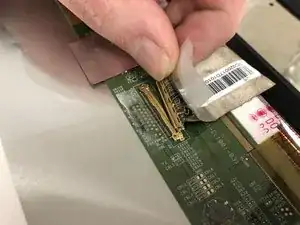 После удаления ленты ленточный разъём отсоединится от задней части экрана.