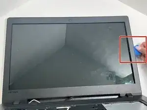 Используя инструмент для открытия, отсоедините зажимы вокруг экрана, удерживающие рамки на месте.