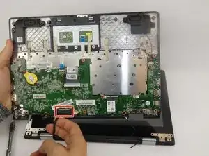 Отсоедините разъём, соединяющий аккумулятор с материнской платой.