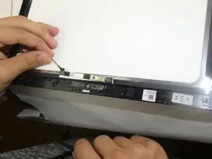 Используйте чёрную нейлоновую лопатку, чтобы снять длинное пластиковое покрытие под экраном.