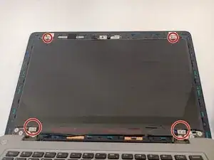 Удалите шесть винтов Phillips #1 по 3 мм, удерживающих экран на ноутбуке.