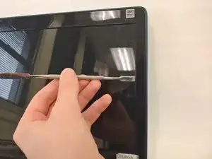 Используя металлическую лопатку, аккуратно подденьте черный обод вокруг экрана.